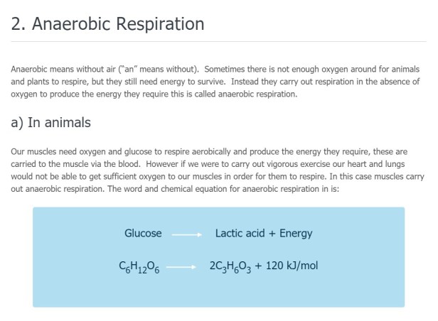 As you can see anaerobic respiration is not as efficient as aerobic and only a small amount of energy is released.