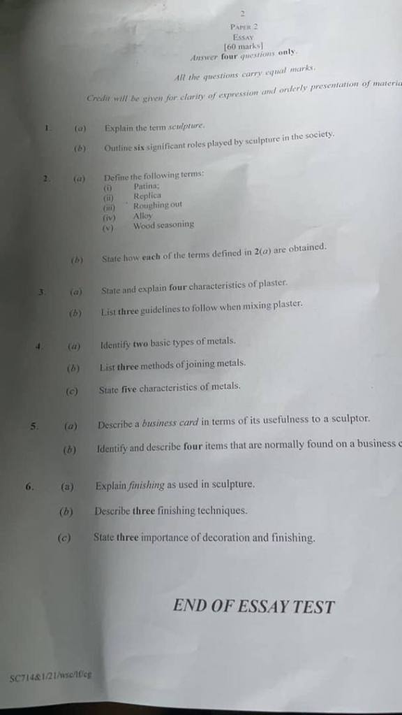 • SCULPTURE ESSAY PAST QUESTION